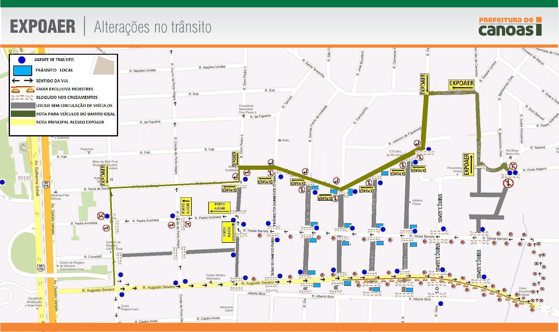 Para garantir melhor organização dos veículos e segurança aos pedestres durante a EXPOAER 2013, no próximo sábado, 12, a Secretaria de Transportes e Mobilidade vai provocar alterações no trânsito no dia do evento.